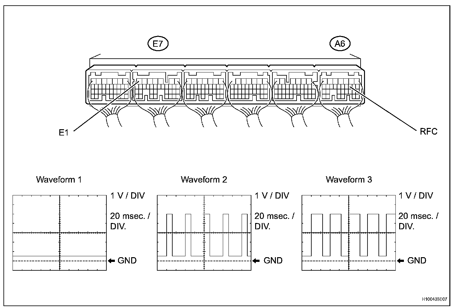 (3) Using the intelligent tester, check the waveform between terminals A6-10 (RFC) and E7-7 (E1) of the ECM.