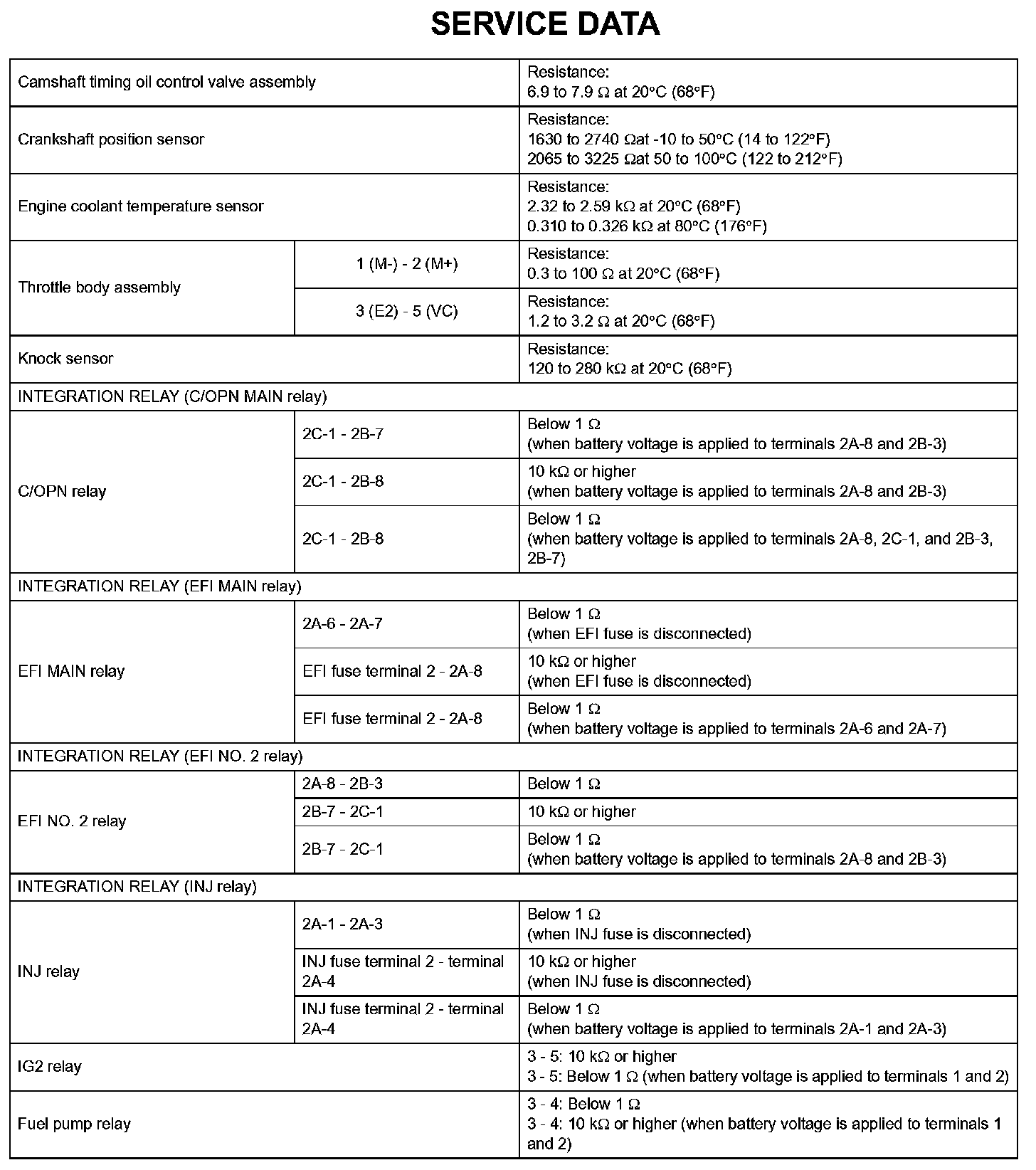 Engine Control System - Service Data: