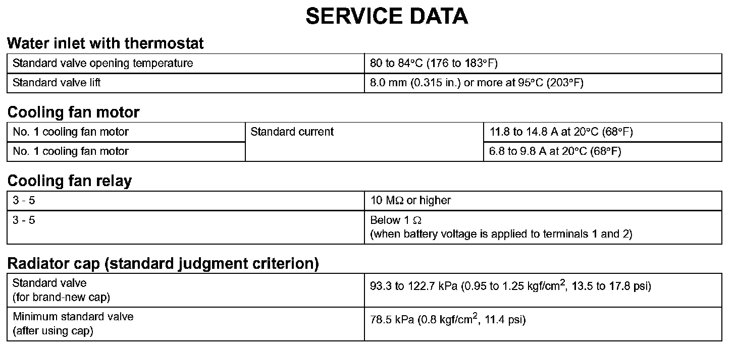 Cooling - Service Data: