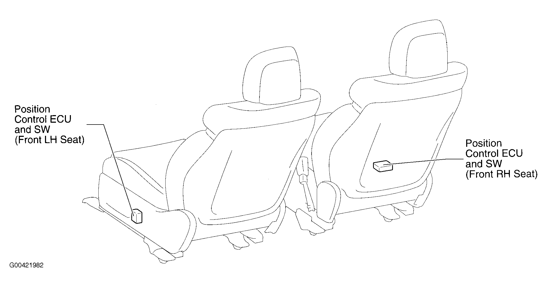 Position Control ECU & SW (Front RH Seat) Right side of front passenger's seat. See Figure.