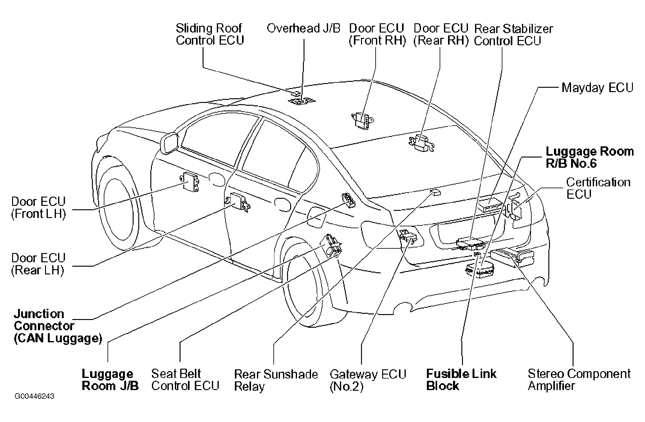 Gateway ECU (No. 2) Front of luggage compartment. See Figure.