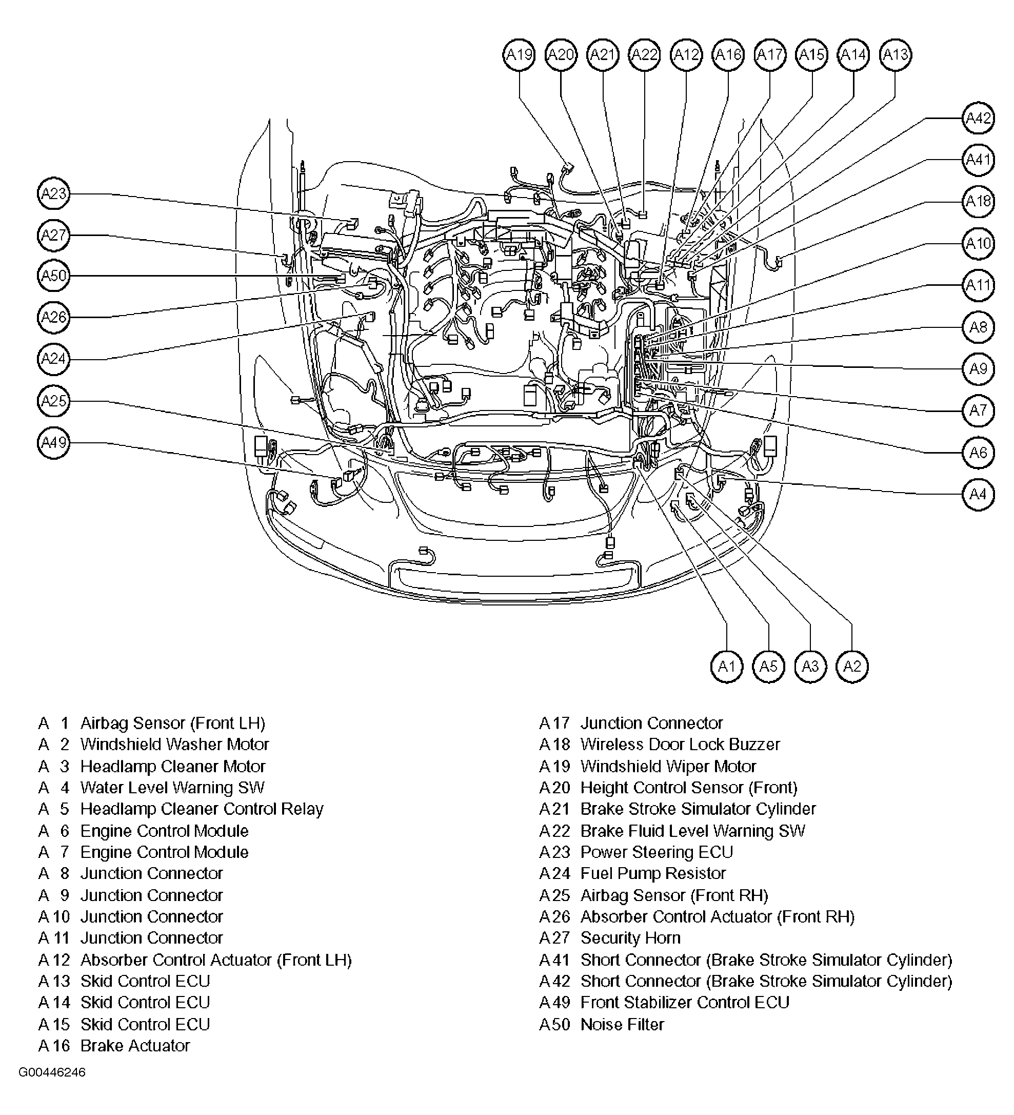 Front Stabilizer Control ECU Right front corner of engine compartment. See Figure.