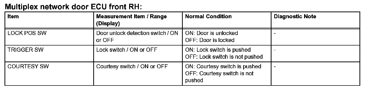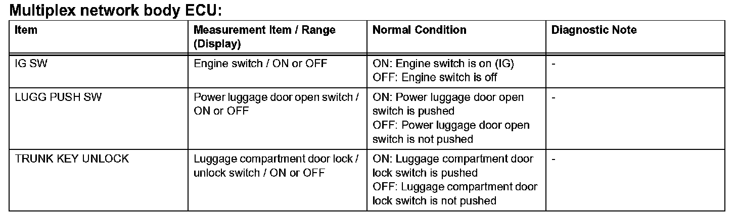 READ DATA LISTHINT: Using the intelligent tester's DATA LIST allows switch, sensor, actuator and other item values to be read without removing any parts. Reading the DATA LIST early in troubleshooting is one way to save time.