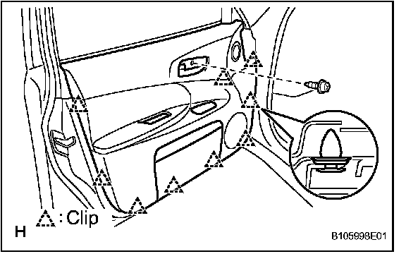 c. Using a clip remover, detach the 9 clips and remove the trim cover.