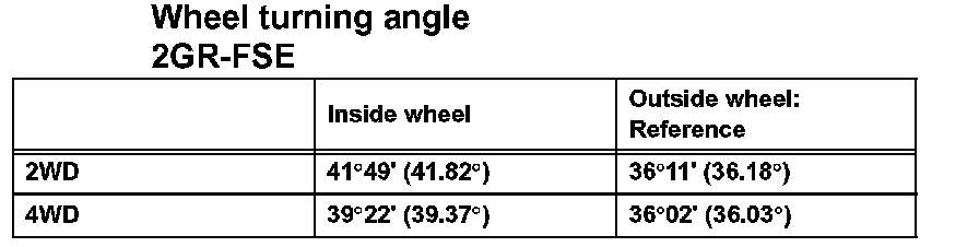 Wheel turning angle 2GR-FSE: