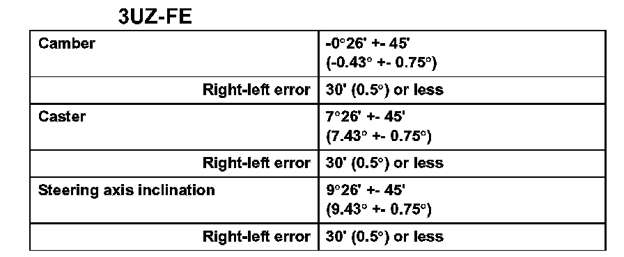 Camber, caster and steering axis inclination 3UZ-FE: