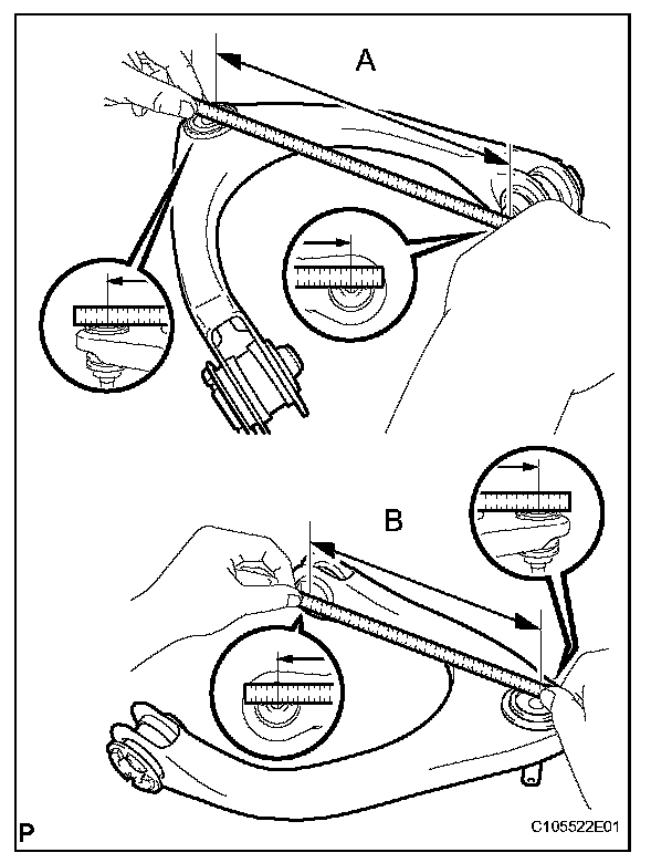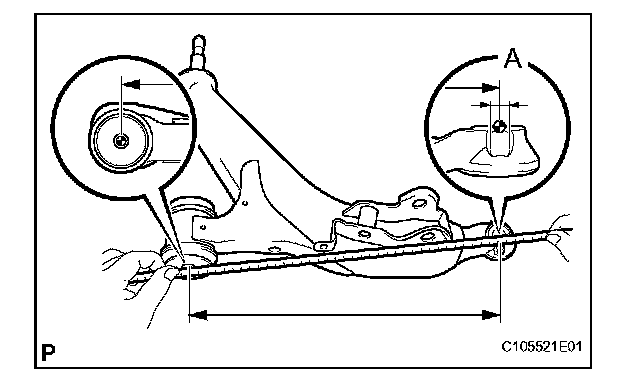 (2) Measure the dimension between the center of the front suspension lower arm assembly bush and position A.