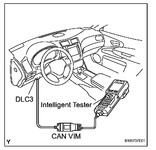 Connect the cable of the intelligent tester to the DLC3, turn the ignition switch on (IG) and attempt to use the tester. If the display indicates that a communication error has occurred, there is a problem either with the vehicle or with the tester.
