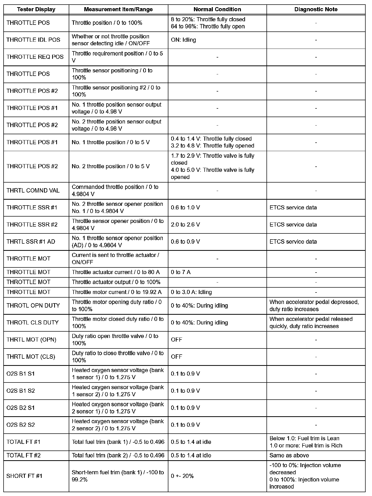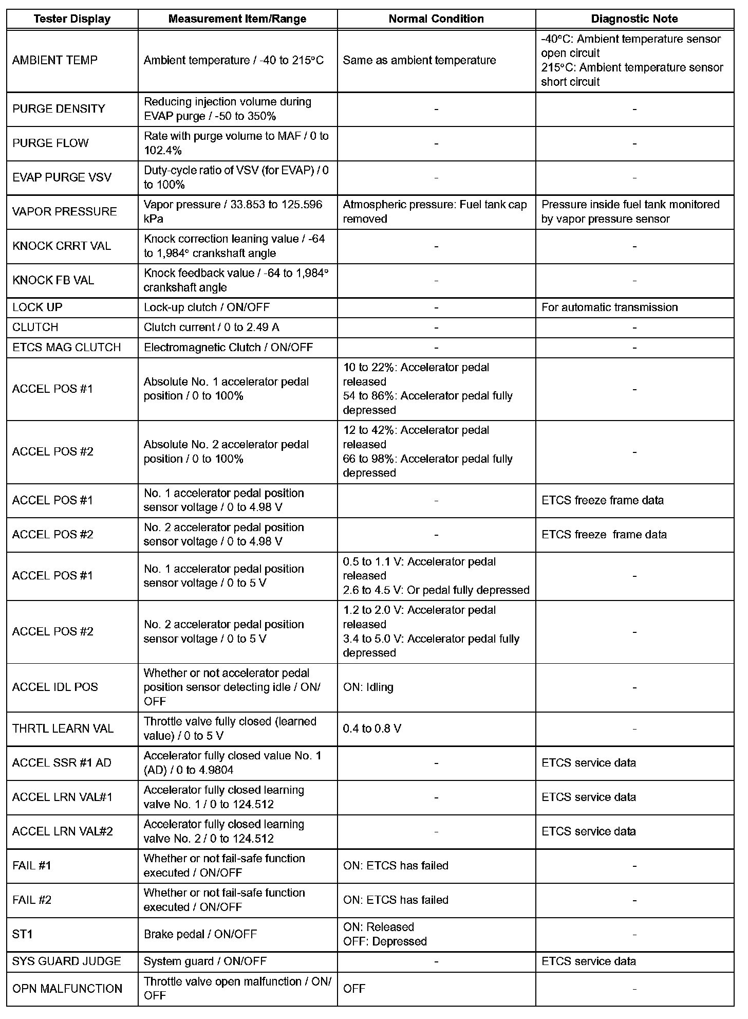 HINT: If no conditions are specifically stated for "idling", the shift lever is in the N or P position, and the A/C and all accessory switches are OFF.
