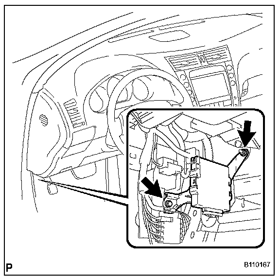 b. Remove the bolt, nut and swivel ECU.