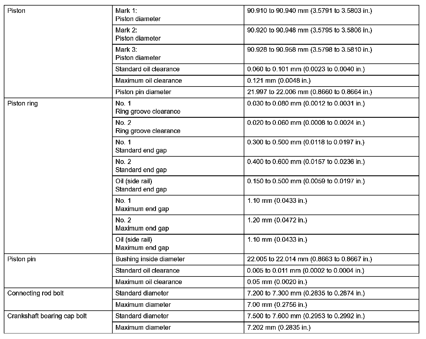 Engine Mechanical - Service Data (Part 2):
