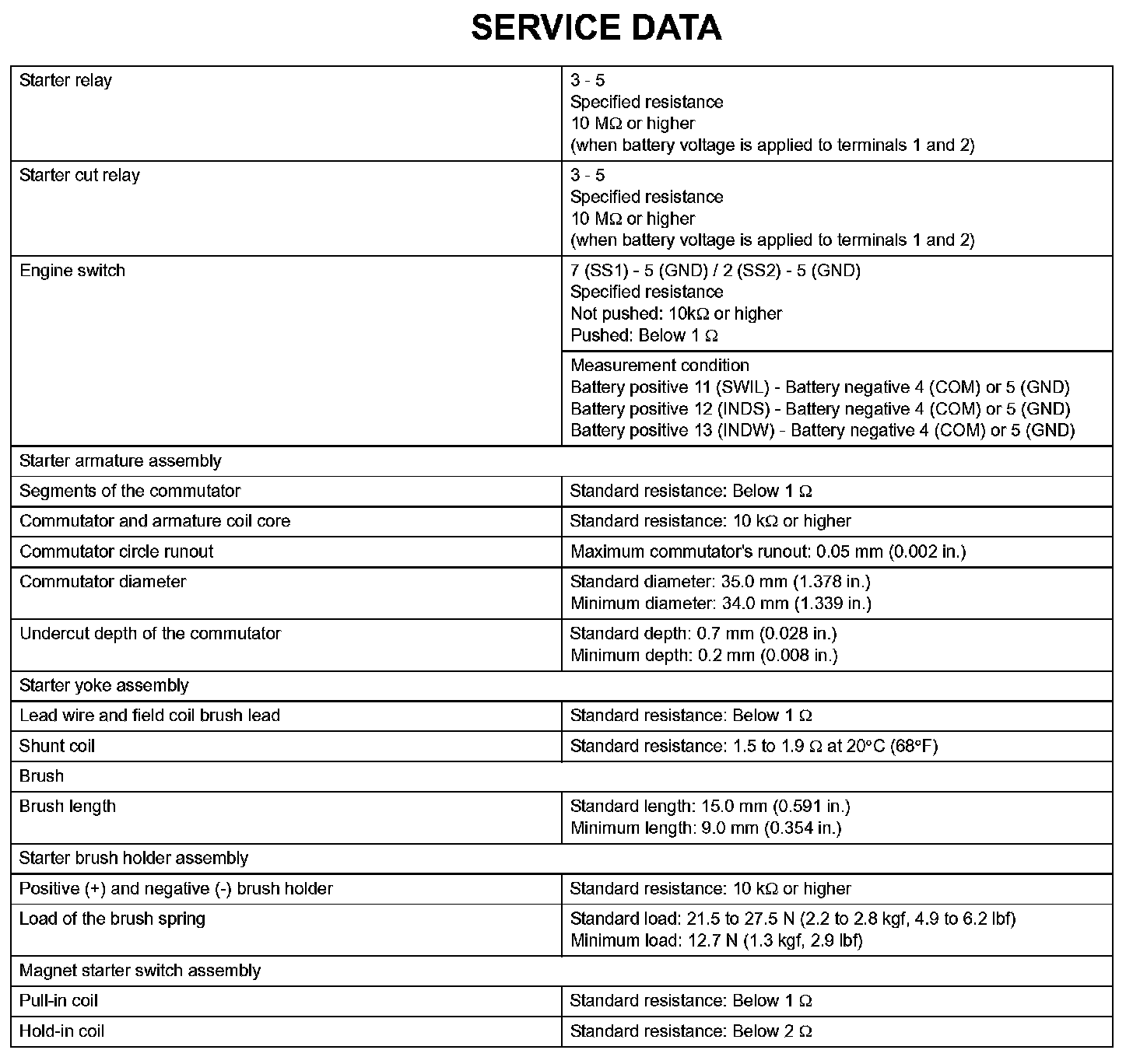 Starting - Service Data: