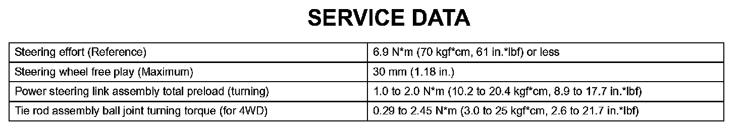 Power Steering - Service Data: