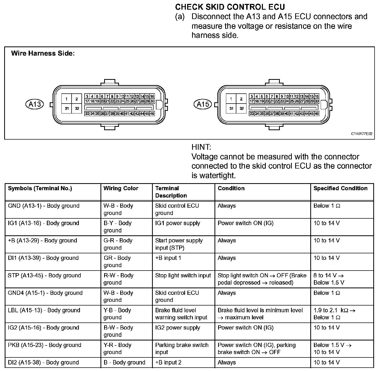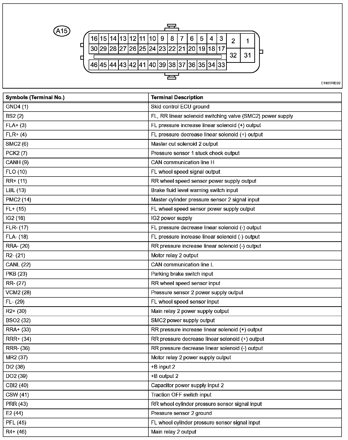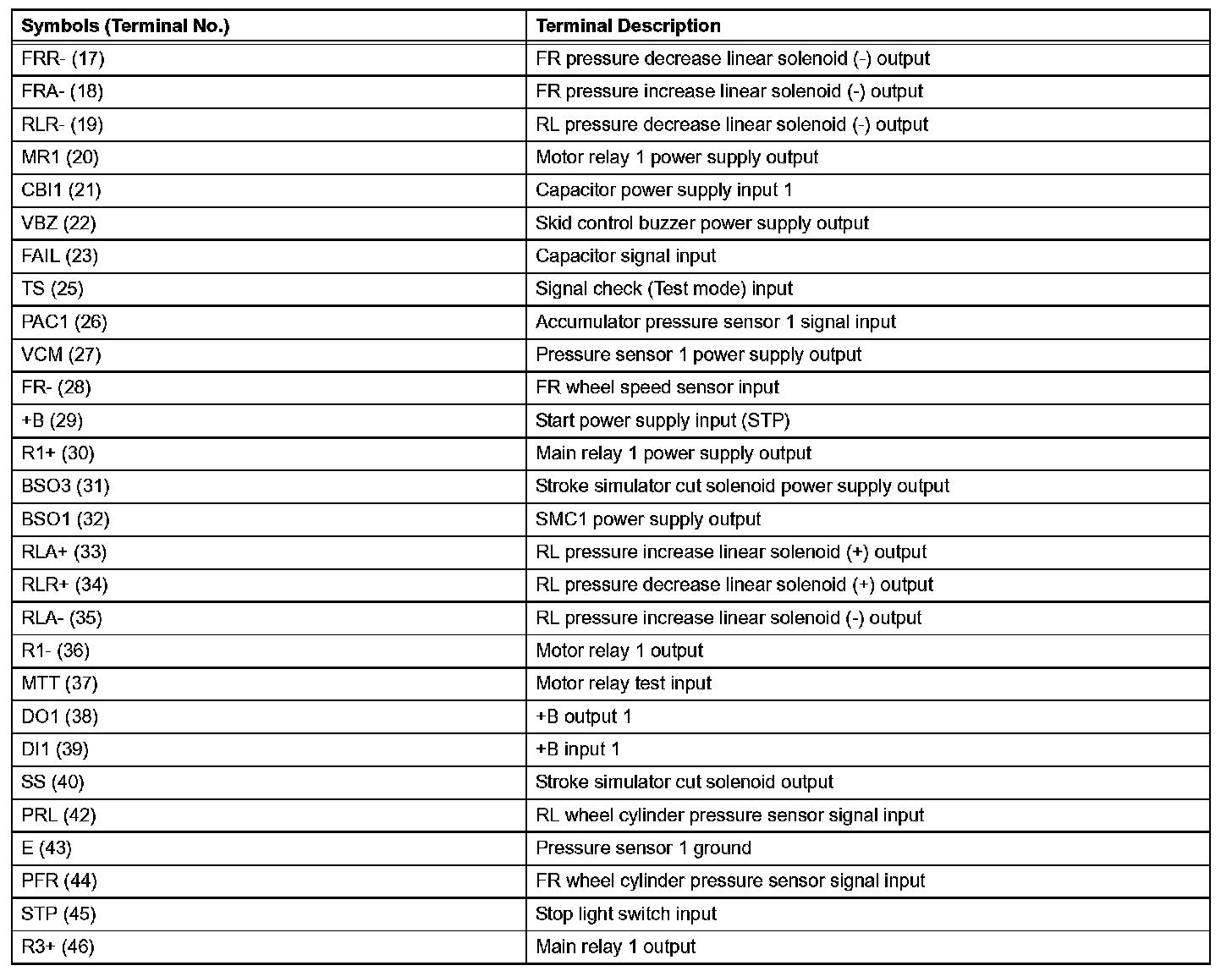 Terminals Of Control Module/Pinouts-Skid Control ECU (Part 1):