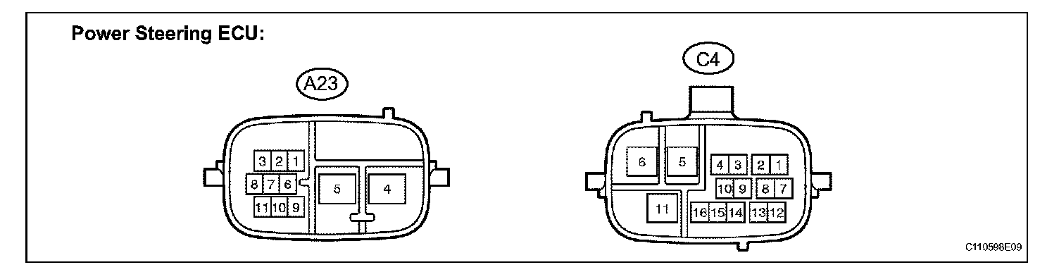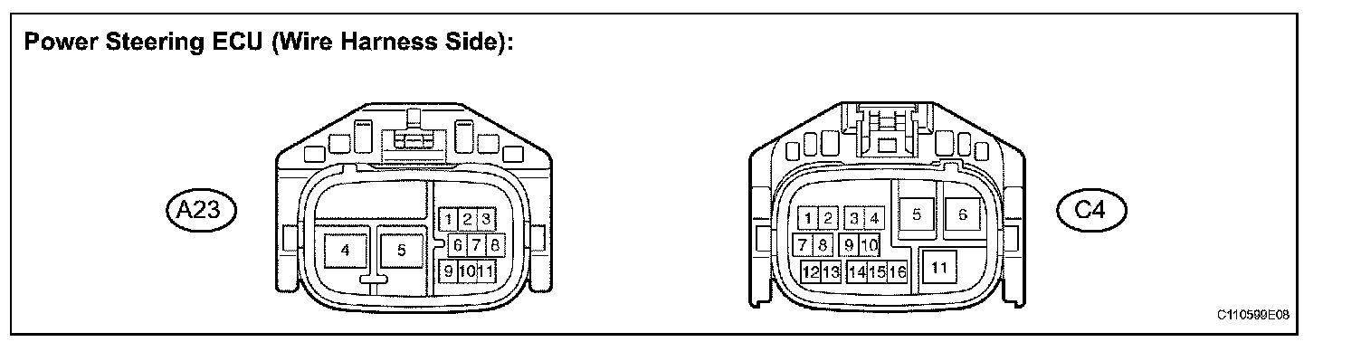 The power steering ECU has waterproof connectors. Therefore, voltage or waveforms cannot be checked with the connectors connected to the vehicle.