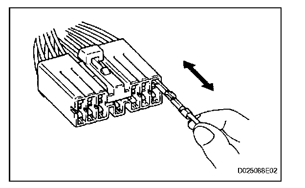 Prepare a spare male terminal. Insert it into a female terminal, and check for ample tension when inserting and after full engagement.