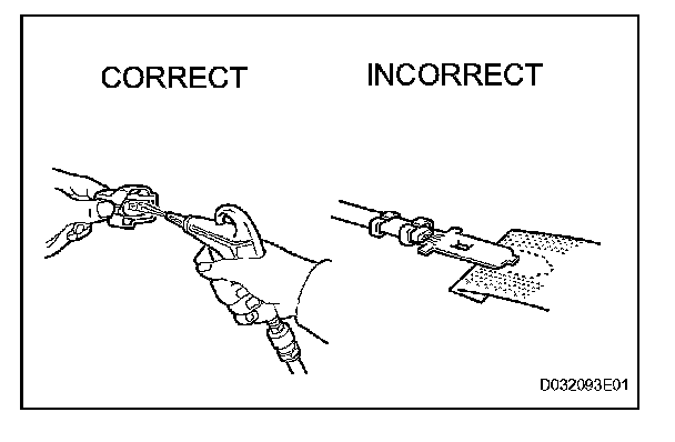 2. Never twist, pull or slacken the wire harness more than necessary.