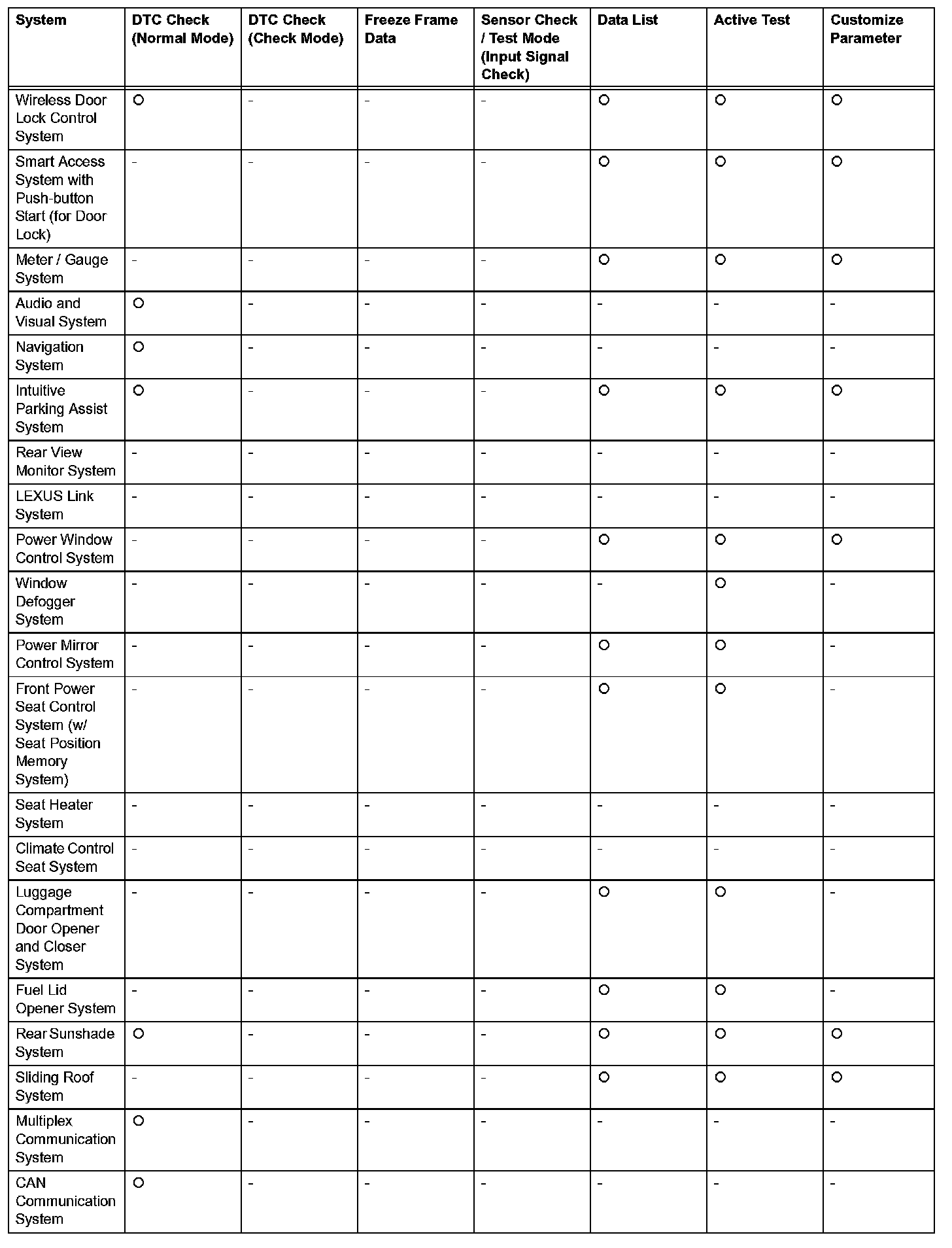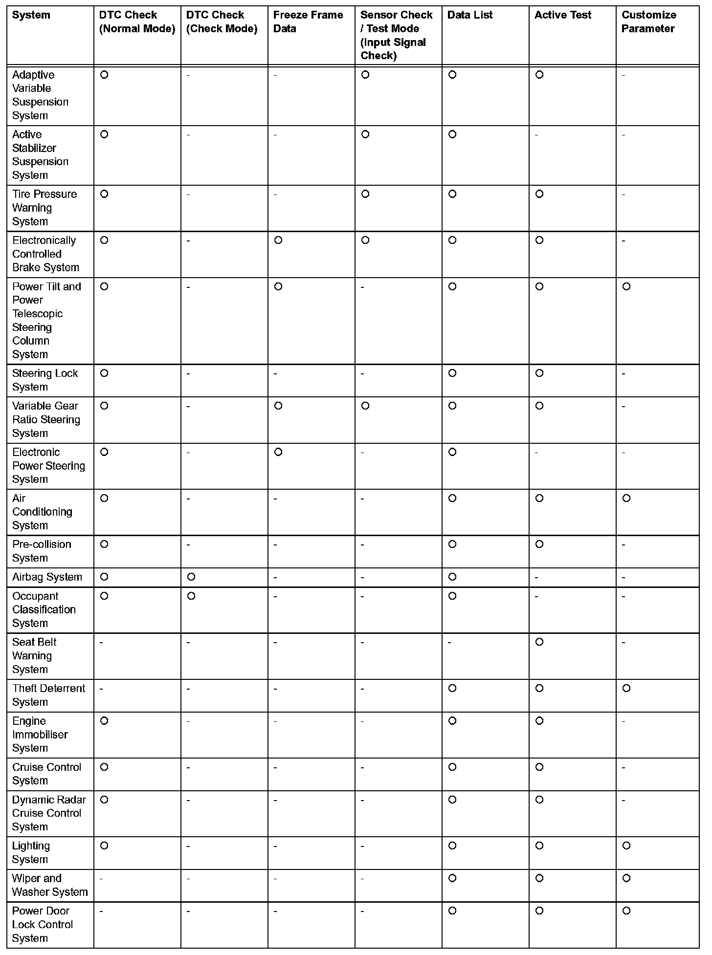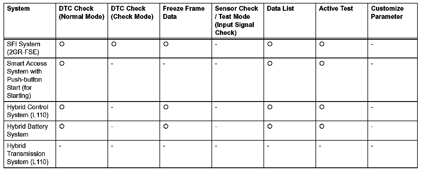 By using these functions, the problem areas can be narrowed down and troubleshooting is more effective. Diagnostic functions are incorporated in the following system in the LEXUS GS450h.