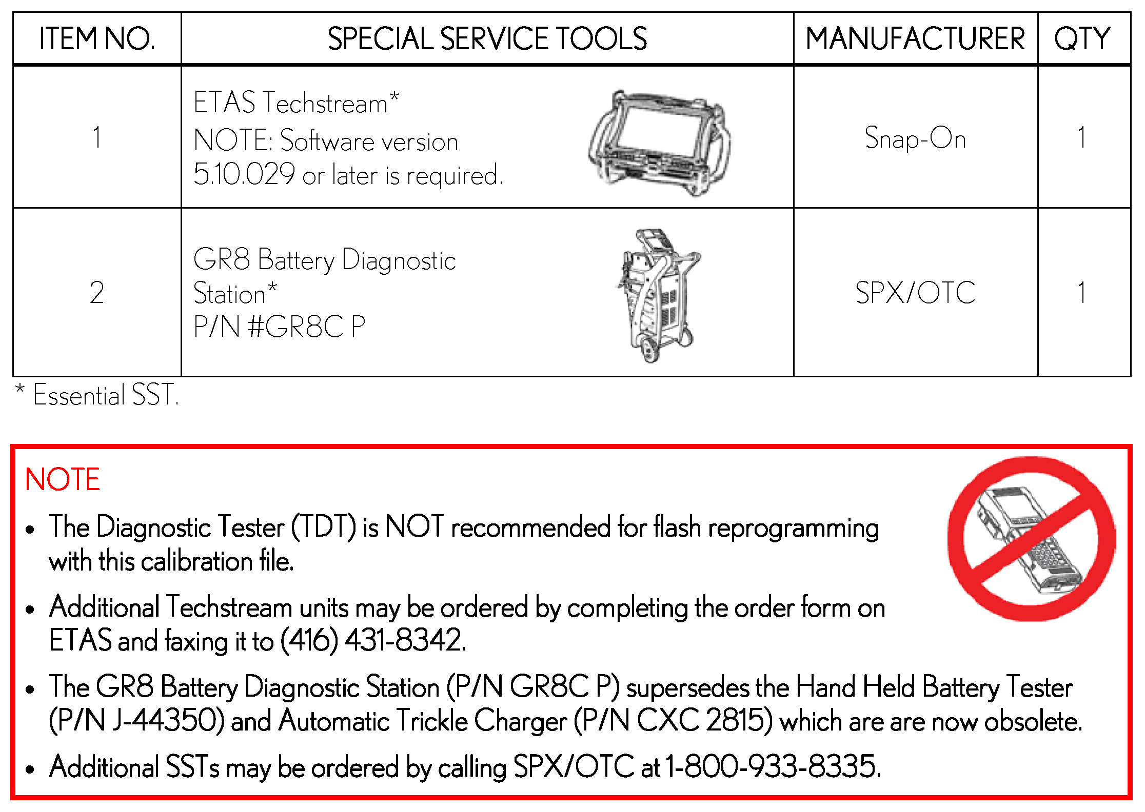 - For details on how to use the GR8 Battery Diagnostic Station, refer to the GR8 Battery Diagnostic Station Instruction Manual located on ETAS/TIS library > Tools > tools and equipment > GR8 Battery Diagnostic Station Instruction Manual.