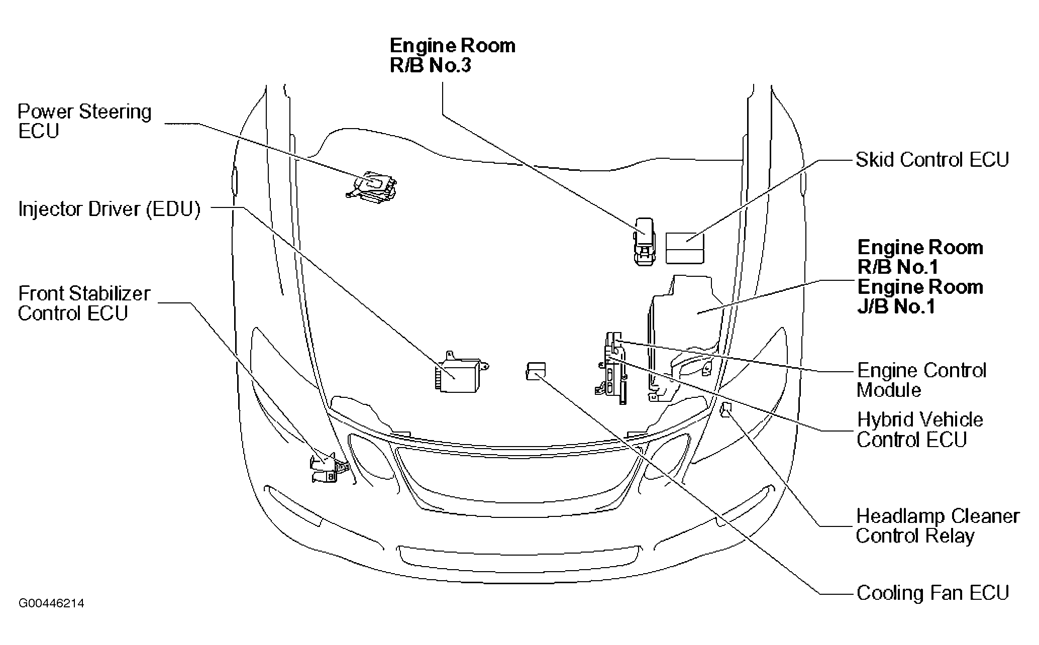 | Engine Room R/B No. 1 | Left side of engine compartment. See Figure. |