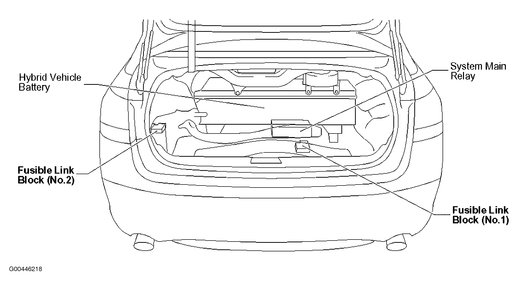 | Fusible Link Block (No. 2) | Left side of luggage compartment. See Figure. |
