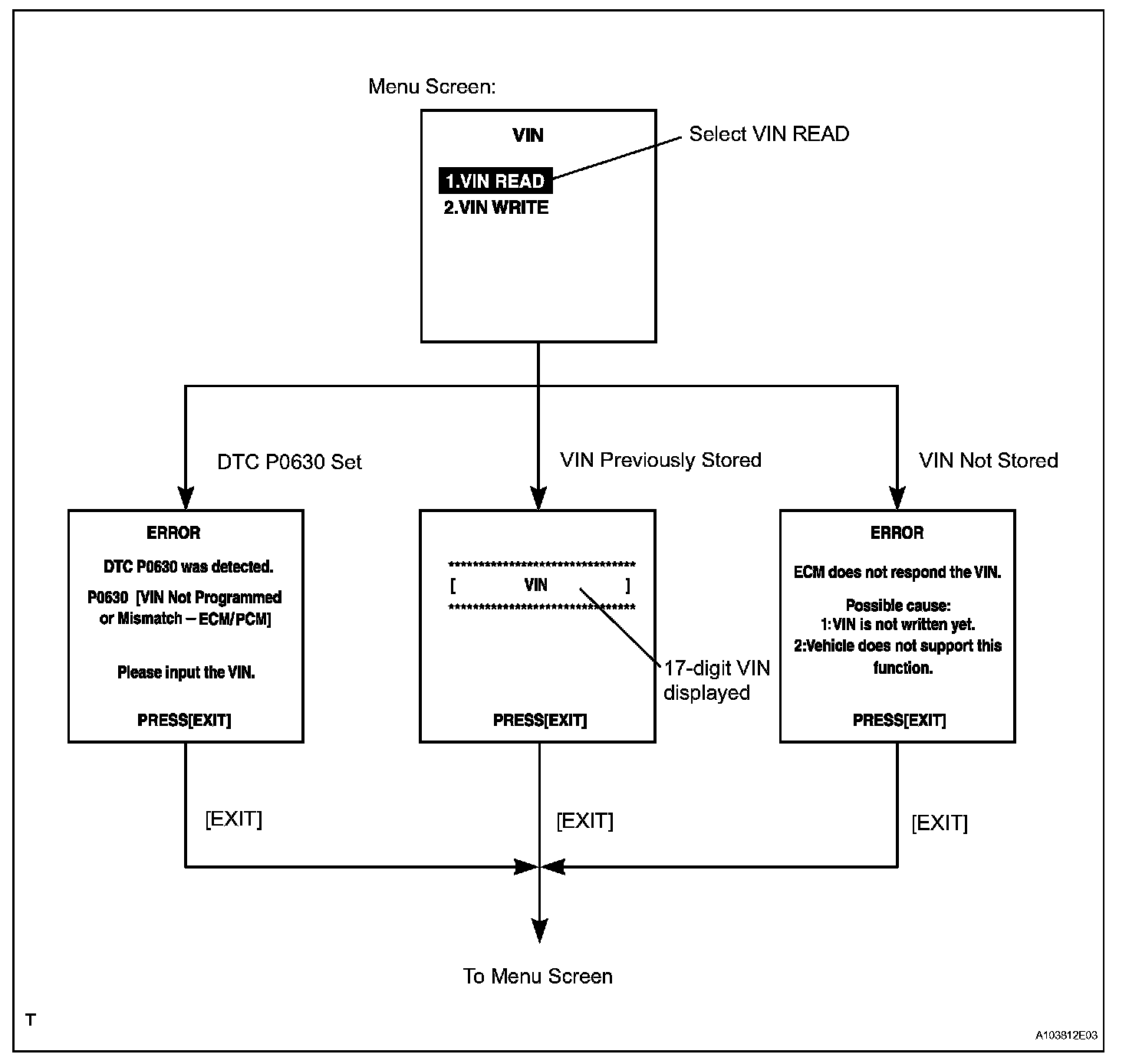 HINT: are the VIN reading instructions. Use the procedures and flowchart. Reading the VIN stored in the ECM is necessary when comparing it to the VIN provided with the vehicle.