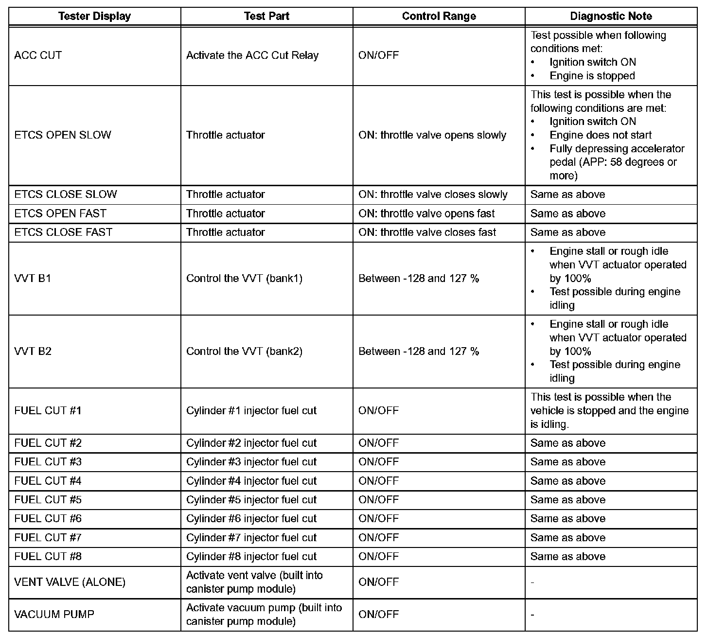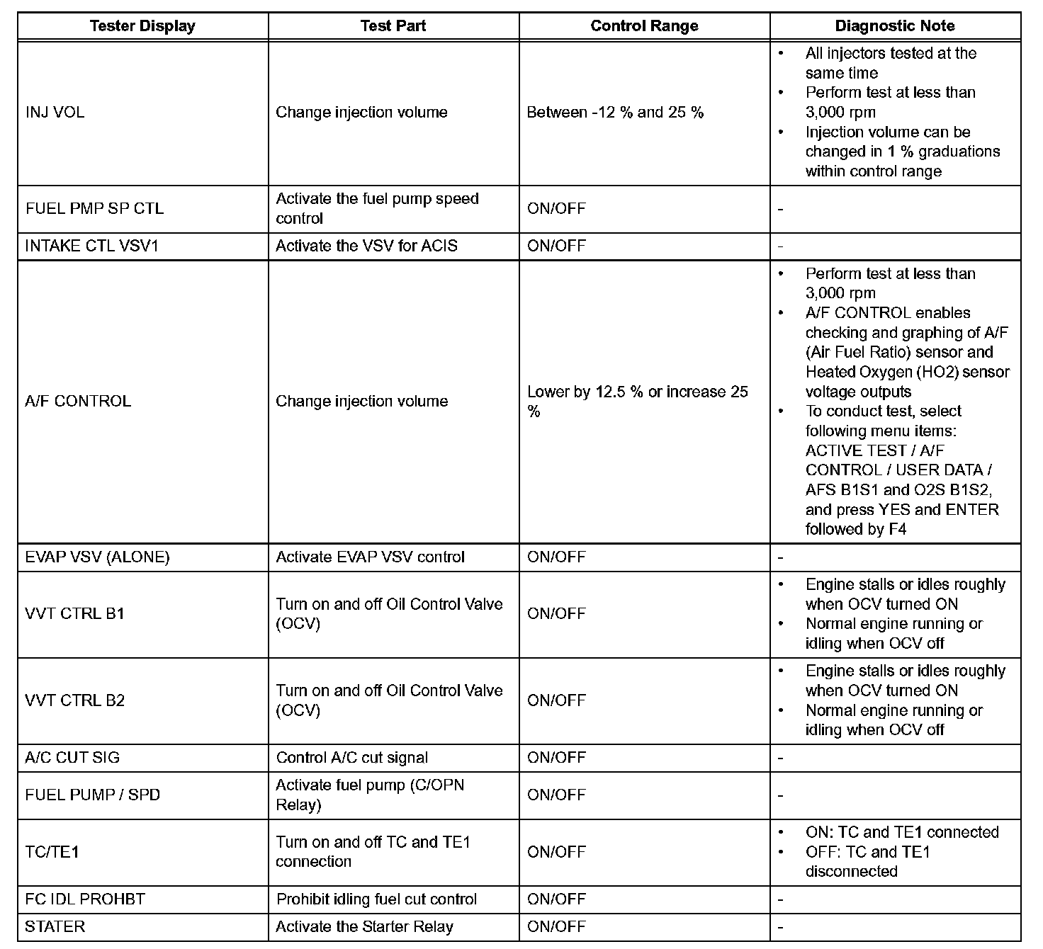 ACTIVE TESTHINT: Performing the intelligent tester's ACTIVE TEST allows relay, Vacuum Switching Valve (VSV), actuator and other items to be operated without removing any parts. Performing the ACTIVE TEST early in troubleshooting is one way to save time. The DATA LIST can be displayed during the ACTIVE TEST.