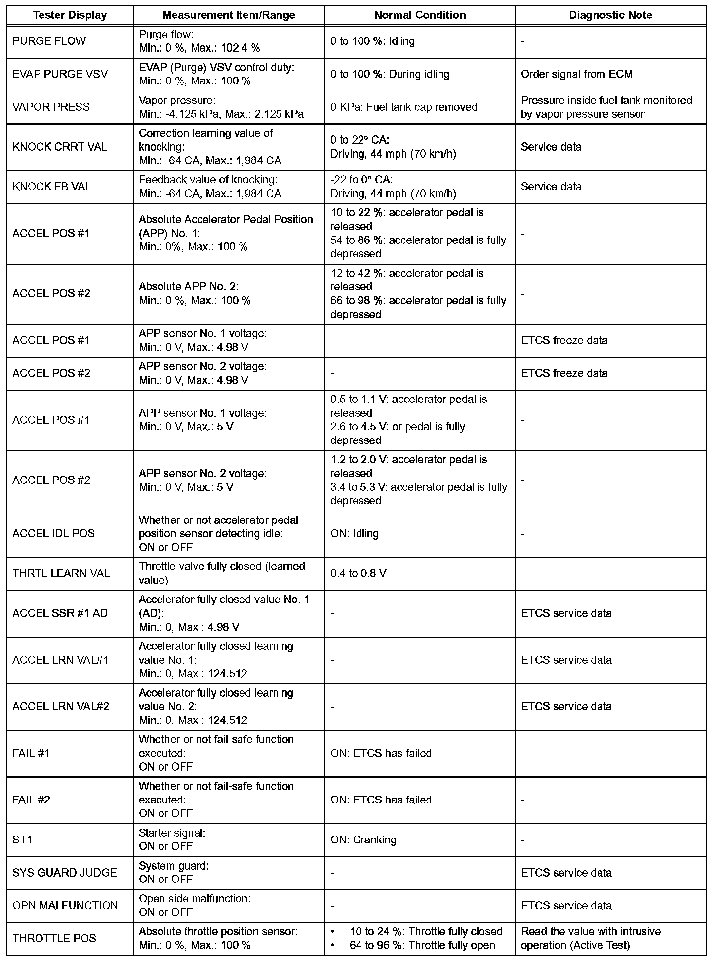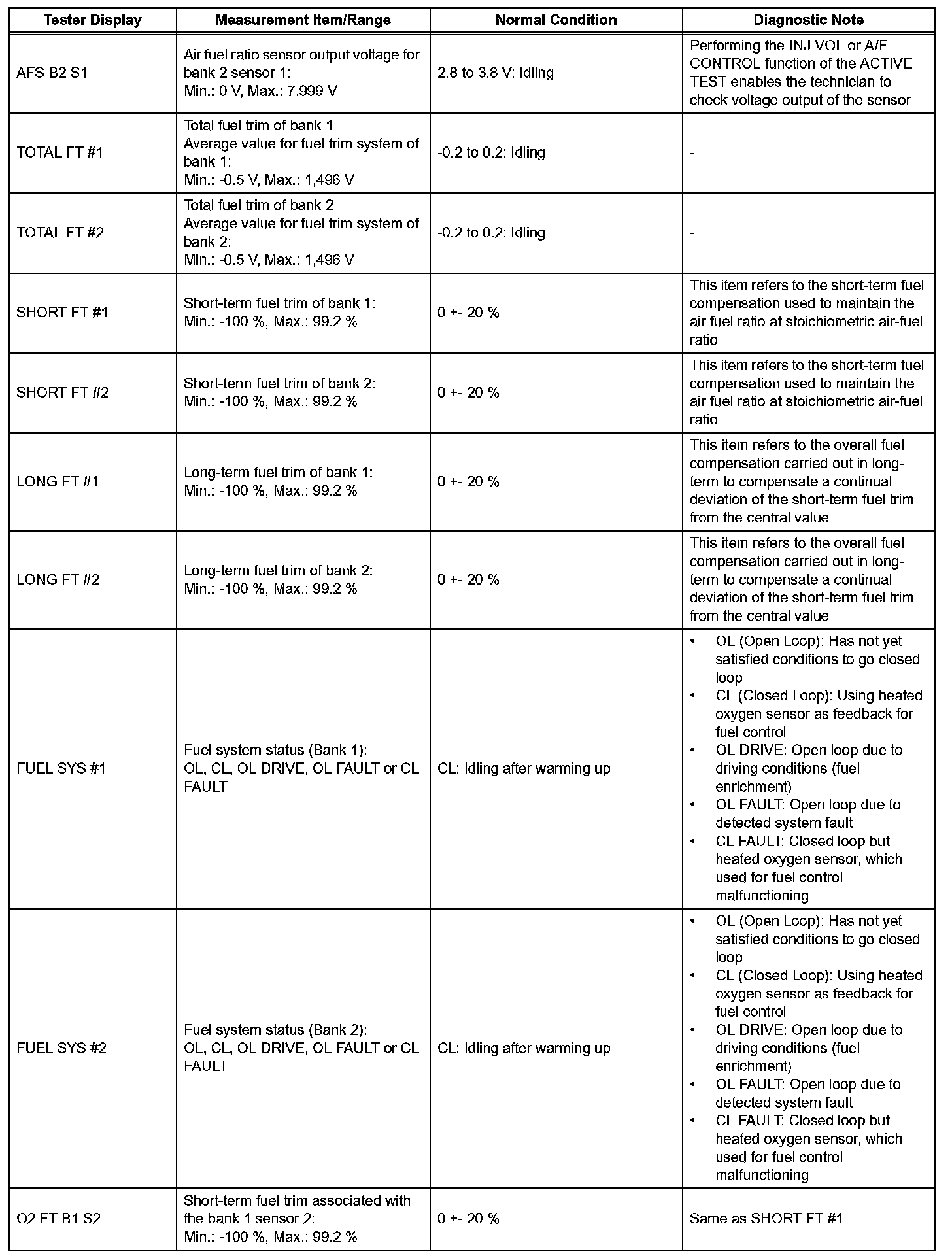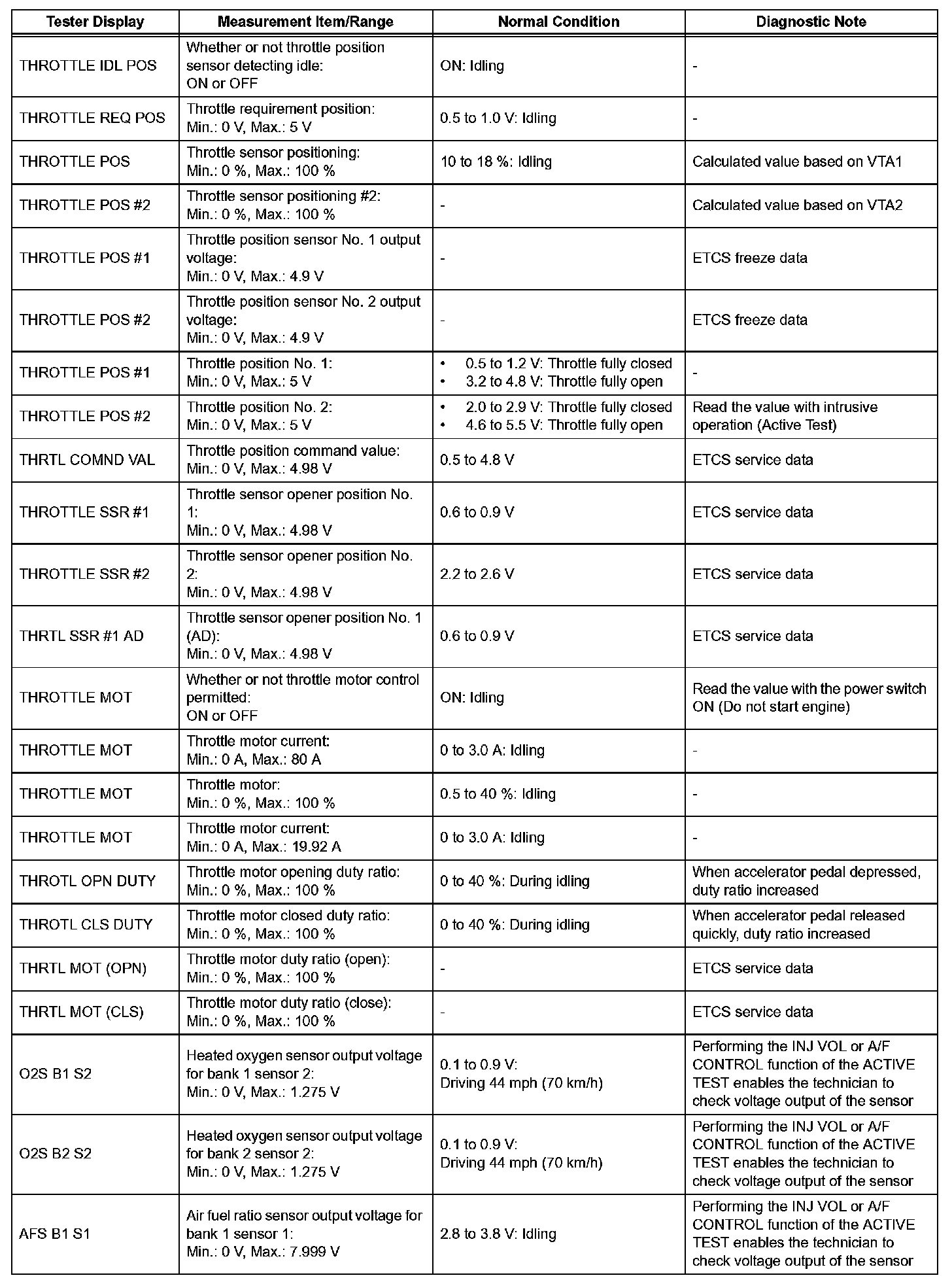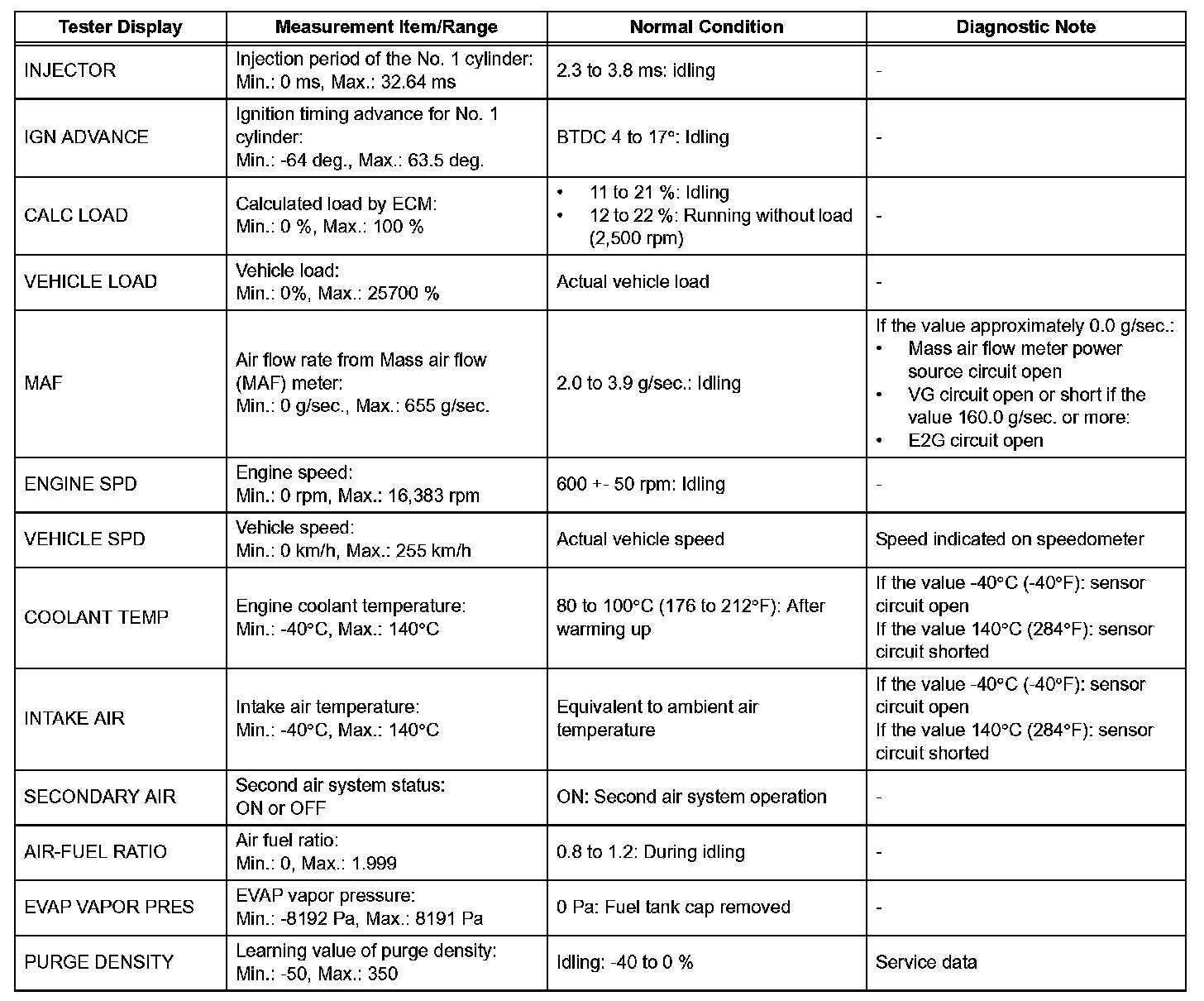 DATA LISTHINT: Using the intelligent tester's DATA LIST allows switch, sensor, actuator and other item values to be read without removing any parts. Reading the DATA LIST early in troubleshooting is one way to save time.