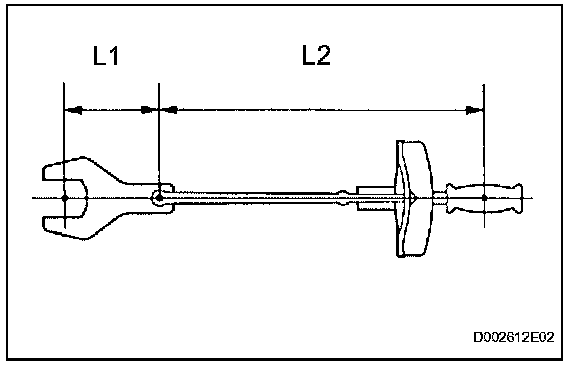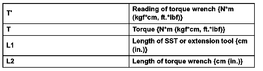 1. Use the formula below to calculate special torque values for situations where SST or an extension tool is combined with the torque wrench.