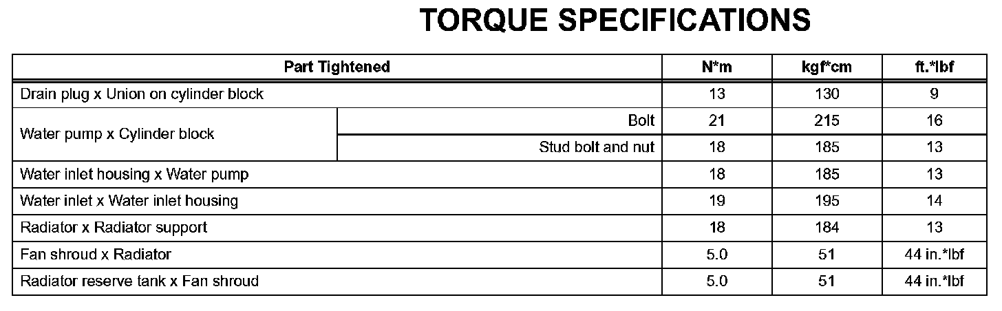 Cooling - Torque Specifications: