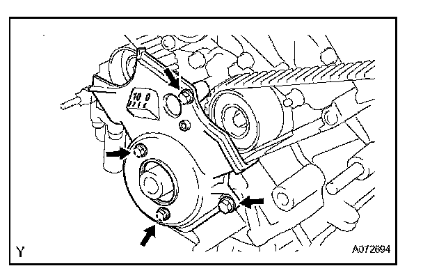 Install the timing chain or belt cover with the nut and 3 bolts.
