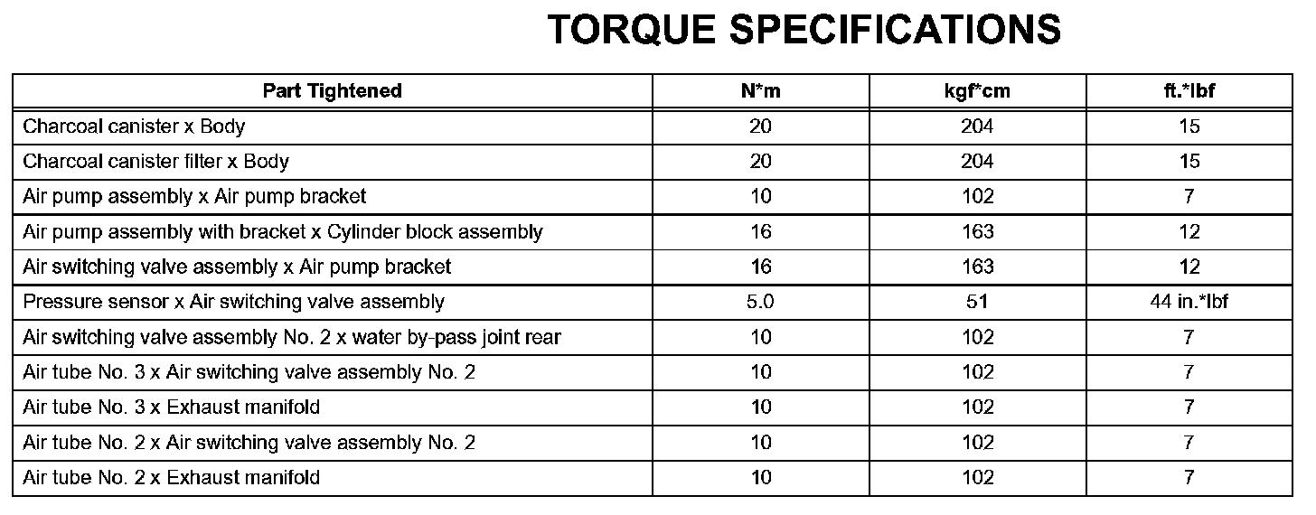 Emission Control - Torque Specifications: