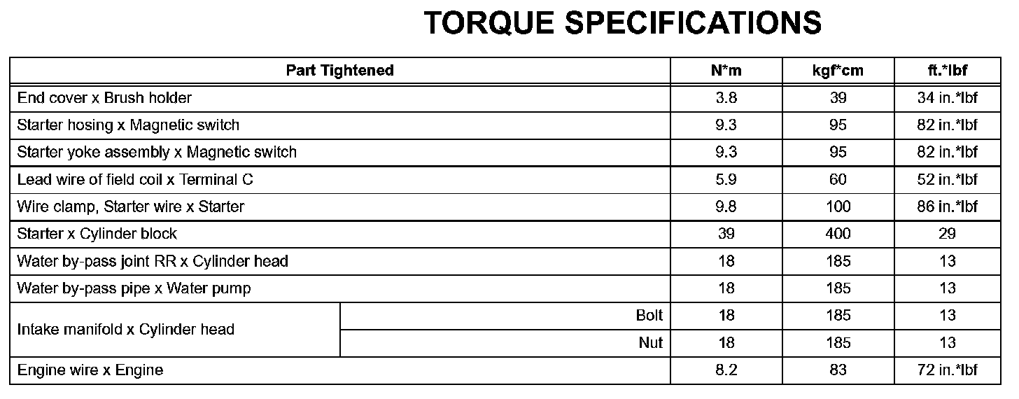 Starting - Torque Specifications: