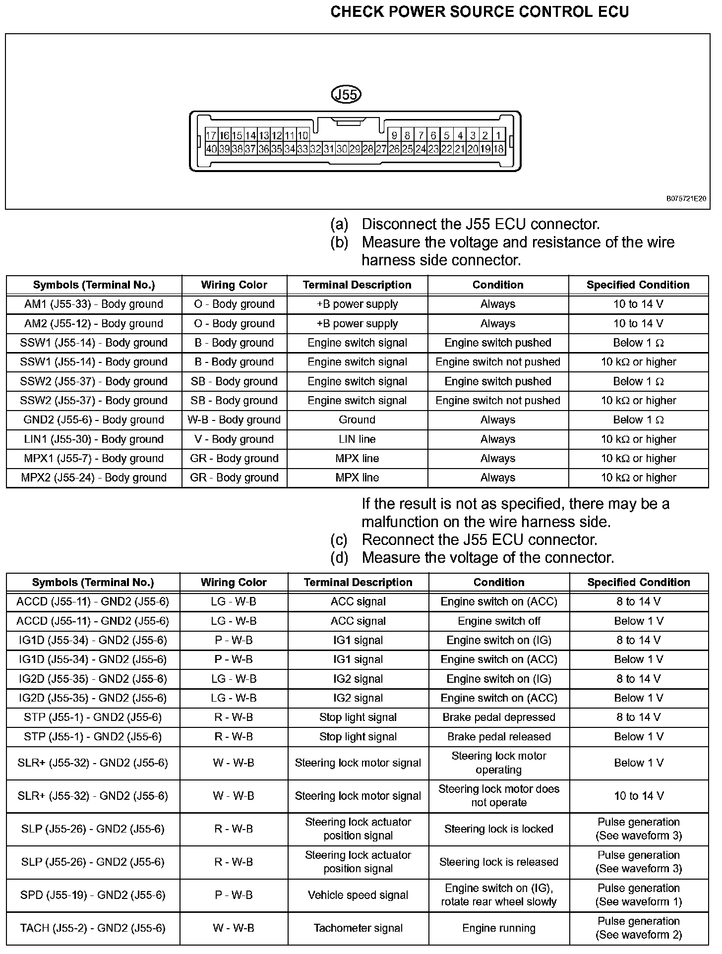 Terminals Of Control Module/Pinouts - Check Power Source Control ECU (Part 1):