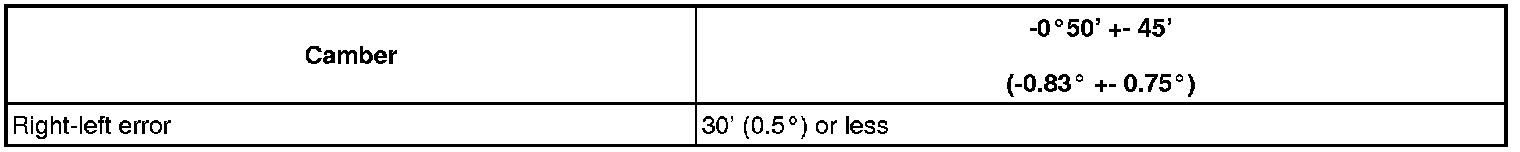 - The maximum tolerance of right and left difference for the camber and caster is 30' (0.5°) or less.