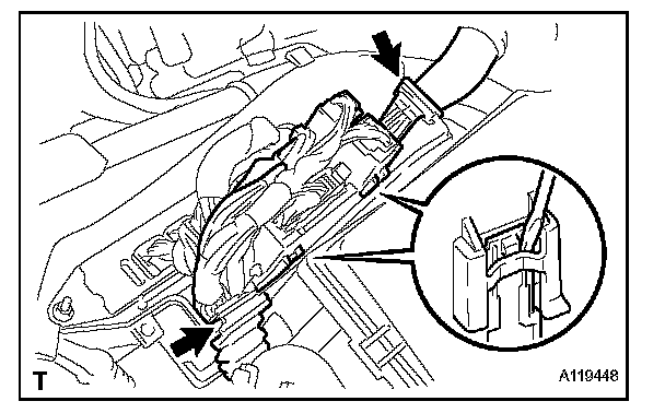 NOTE: Make sure that the wire harness does not get caught between the parts.