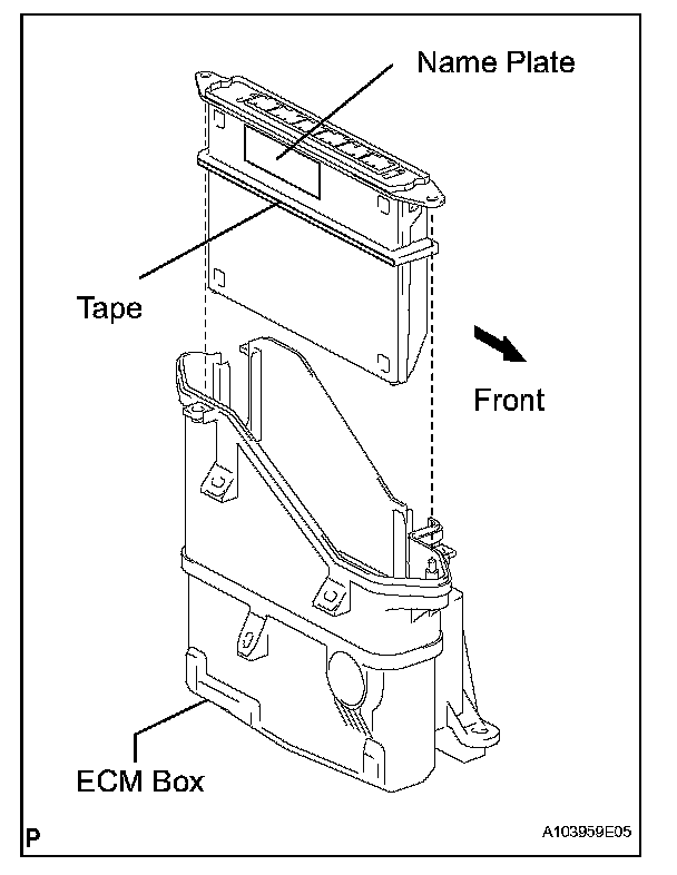 - Install the ECM on the ECM box with the name plate facing the inside of the vehicle.