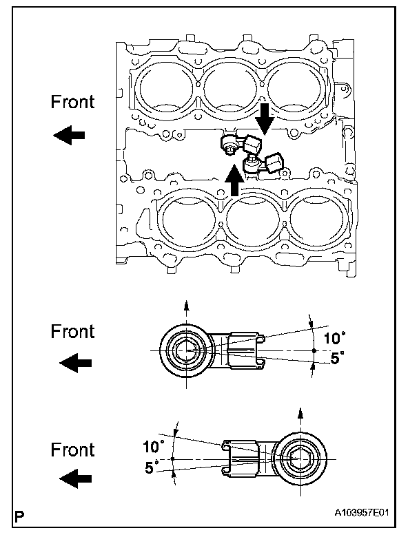 a. Install the 2 knock sensors so that they are horizontal as shown in the illustration. Then install the 2 bolts.