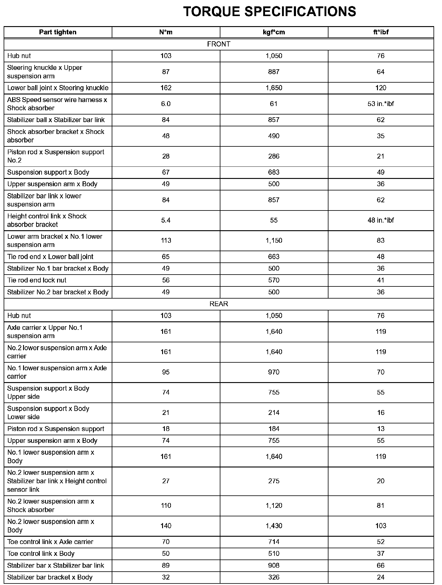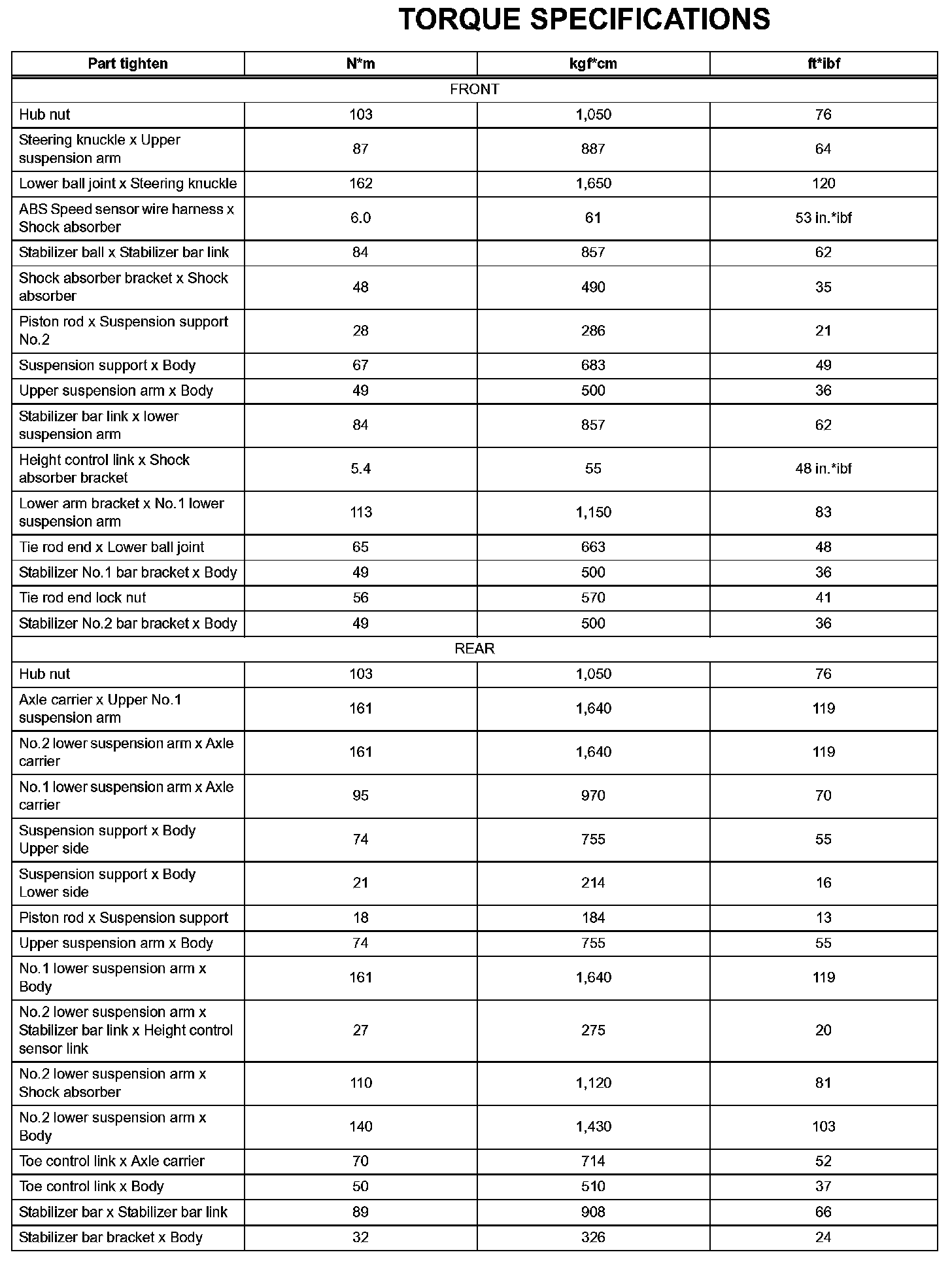 Suspension-Torque Specifications: