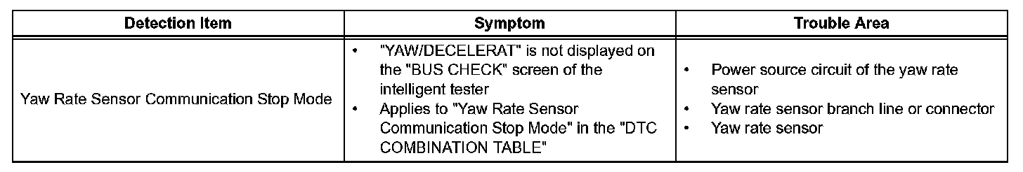Home >> Lexus >> 2007 >> IS 250 RWD V6-2.5L (4GR-FSE) >> Repair and Diagnosis >> Powertrain Management >> Computers and Control Systems >> Information Bus >> Testing and Inspection >> Component Tests and General Diagnostics >> Yaw Rate Sensor Communication Stop Mode