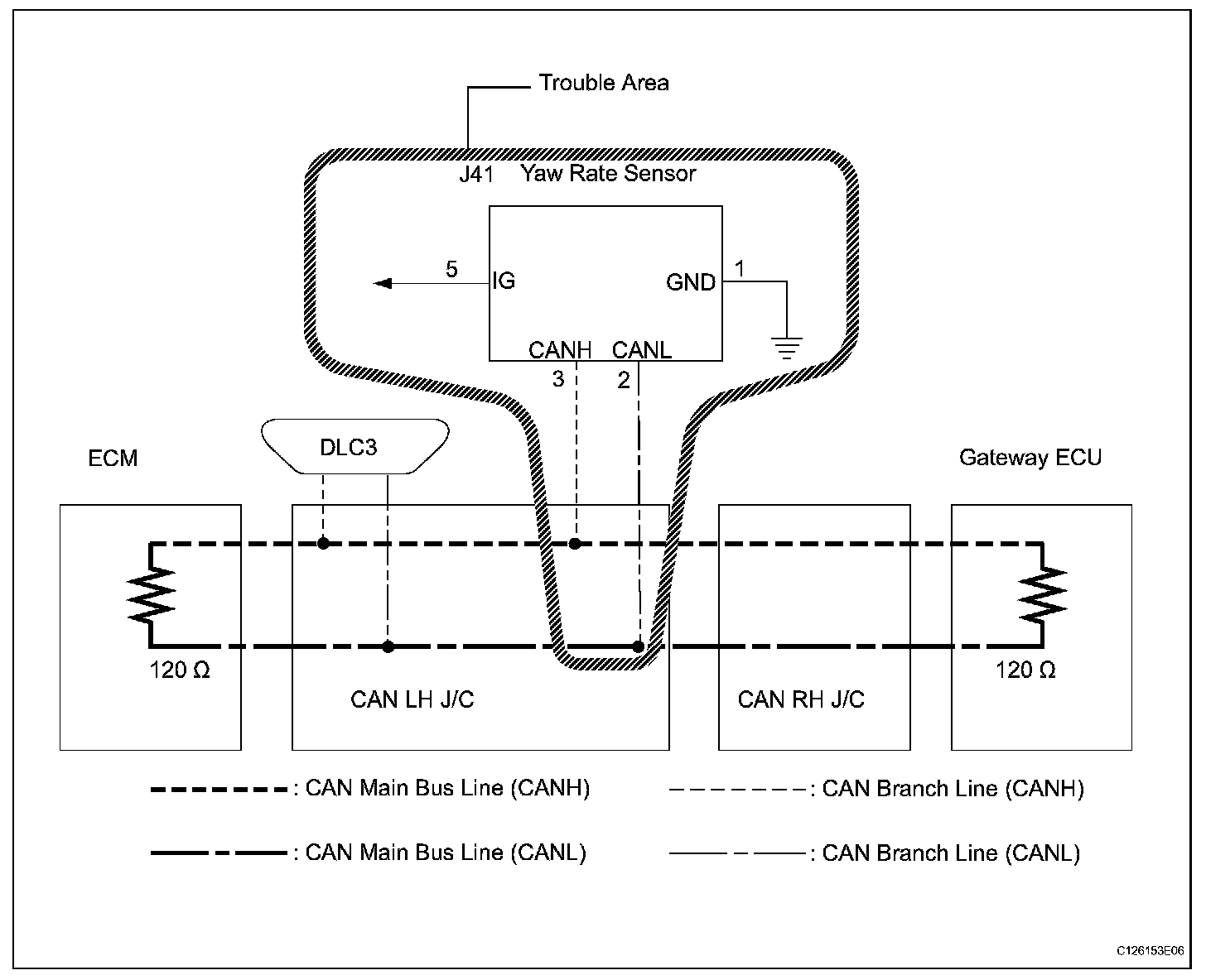 HINT: "YAW/DECELERAT" refers to the circuit that includes the yaw rate sensor.