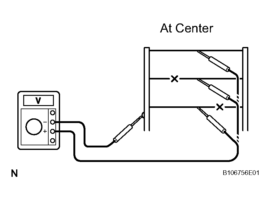 3. Check the voltage at the center of each defogger wire, as shown in Fig 3 .