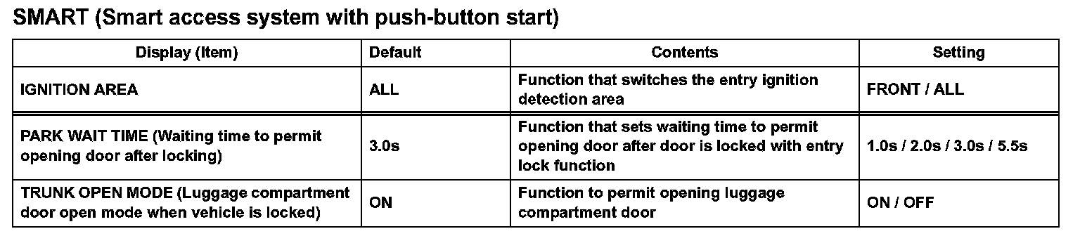 HINT: The function only changes the entry unlock mode of the smart access system with push-button start. It does not switch the unlocking of the wireless door lock control.