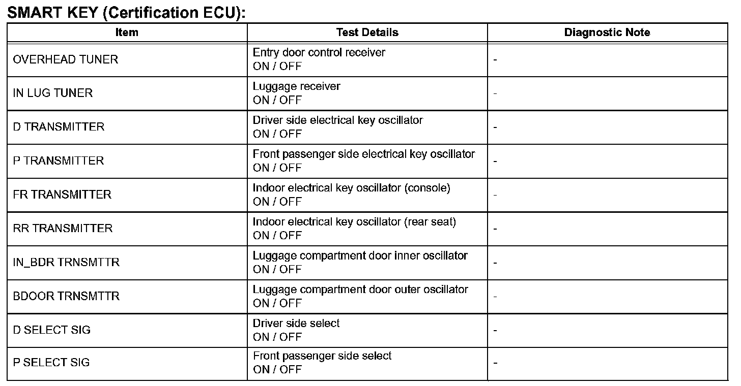 Home >> Lexus >> 2007 >> IS 350 V6-3.5L (2GR-FSE) >> Repair and Diagnosis >> Body and Frame >> Locks >> Keyless Entry >> Testing and Inspection >> Scan Tool Testing and Procedures >> Smart Access System With Push-Button Start >> Active Test