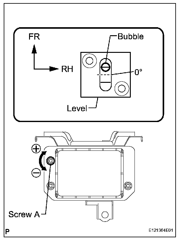 If the axis is not as specified, use a hexagon wrench to adjust screw B until the divergence of the radar beam axis is 0 °.
