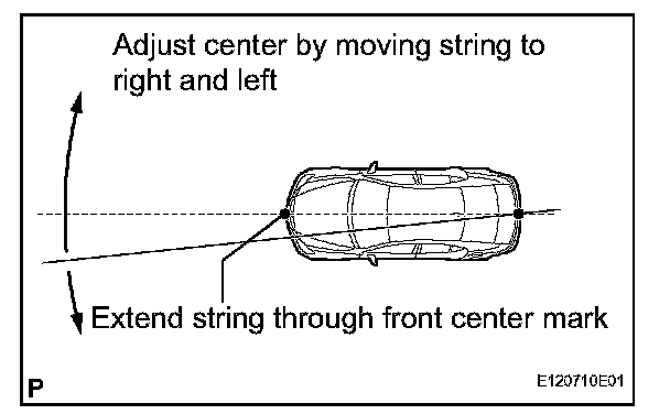 1. Hang the string (with weight) from the center of the vehicle's rear emblem. Mark the vehicle's rear center point on the ground. Repeat the same procedure for the front of the vehicle.