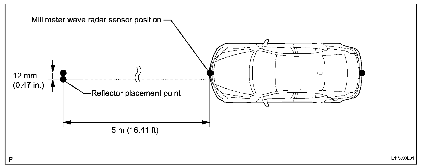 3. Using a tape measure, measure 12 mm (0.47 in.) to the left of the 5 m (16.41 ft) position. Place the reflector at that position.