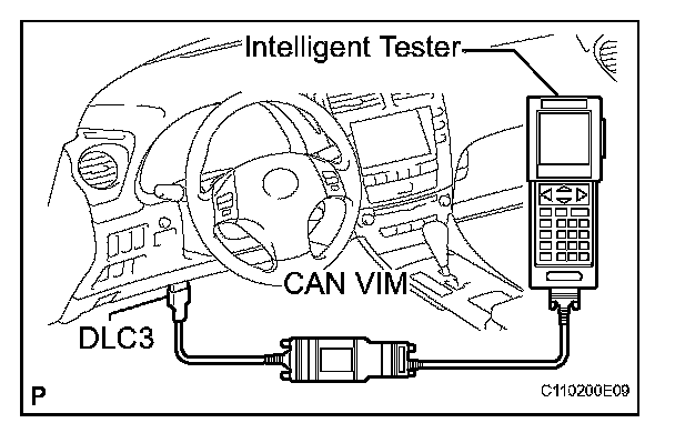 1. Connect the intelligent tester to the Controller Area Network Vehicle Interface Module (CAN VIM). Then connect the CAN VIM to the Data Link Connectors 3 (DLC3).