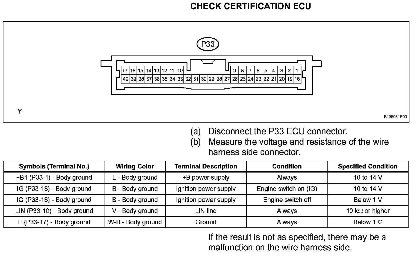 Terminals Of Control Module/Pinouts - Check Certification ECU: