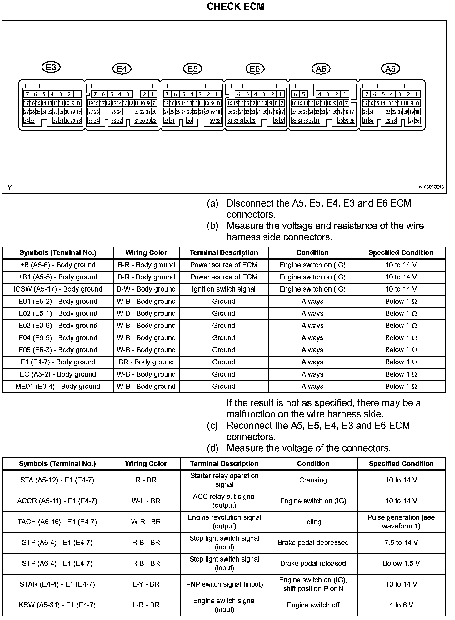 Terminals Of Control Module/Pinouts - Check ECM (Part 1):
